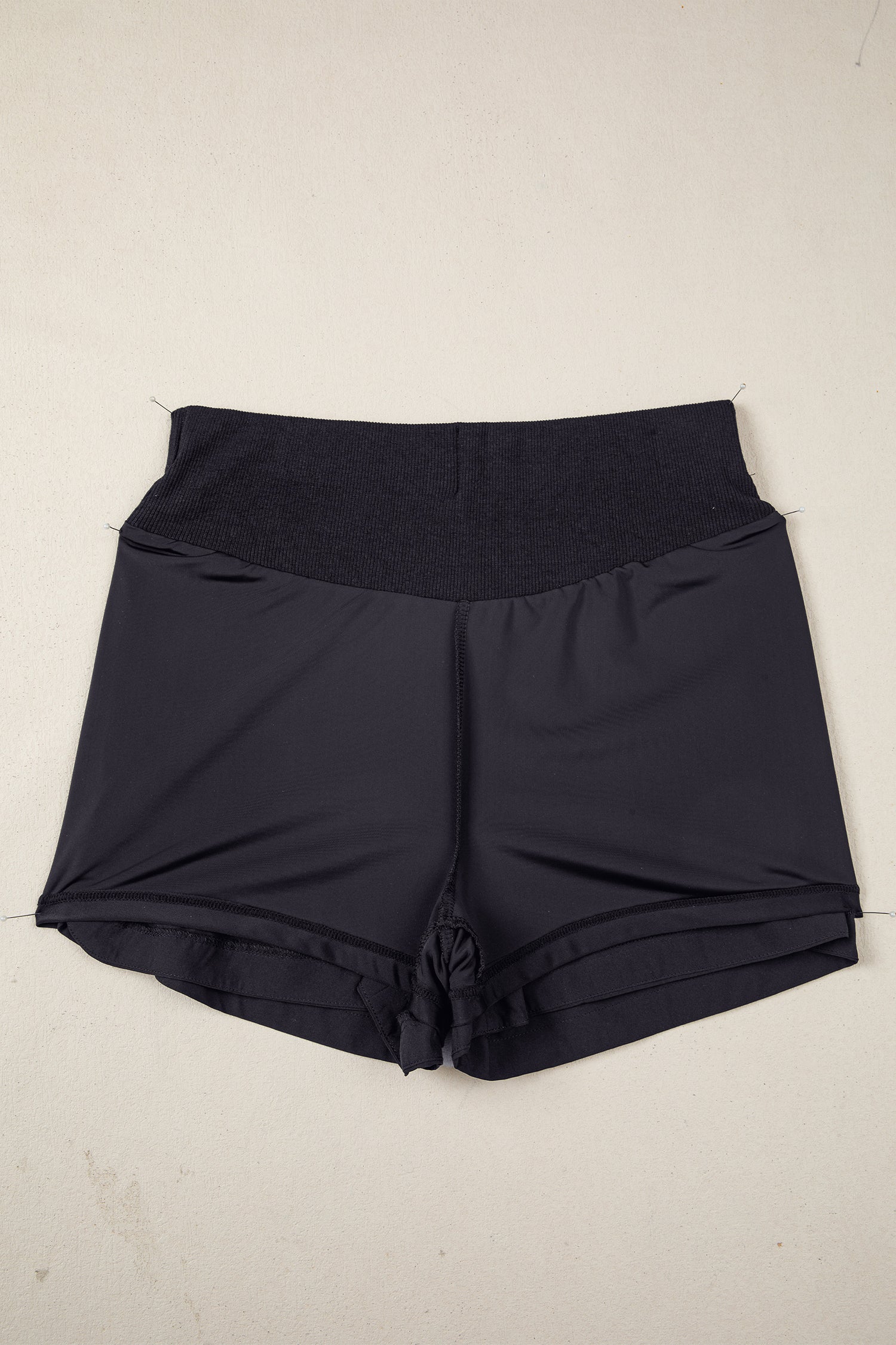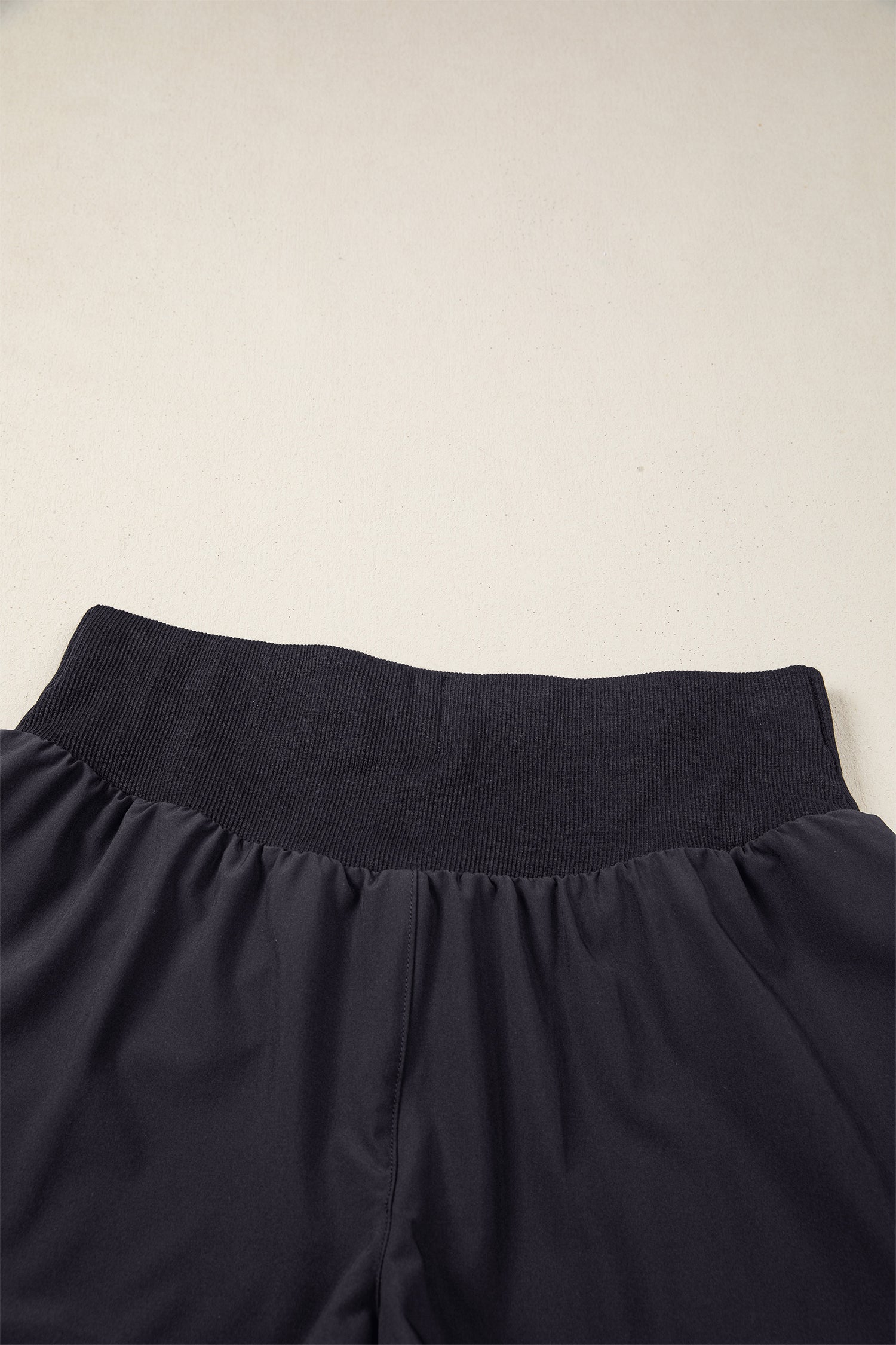 Black Solid Color Ribbed Patchwork High Waist Athletic Shorts
